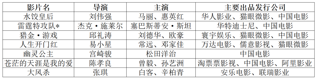 剧情片方面,有马丽主演根据真实故事改编的《水饺皇后》,以及改编自法国高分电影《贝利叶一家》的《独一无二》。